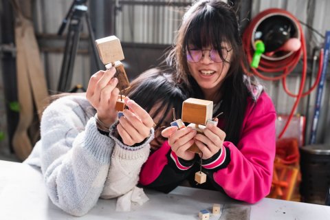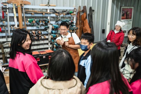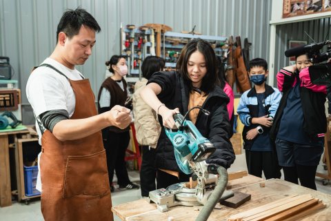 由木工達人謝錦慶創立的「沁木手作」,則不斷為木材資源延伸多元方案,秉持「環保、回收、再利用」的創作核心,期盼能憑藉扎實技藝和創新思維,妥善拓展木頭餘料的再生之道。這一次的職場體驗,就讓我們加入五權國中美術班的學生們,一同領略木材循環利用的永續實踐,仔細體會木作蘊藏的溫潤感動吧!